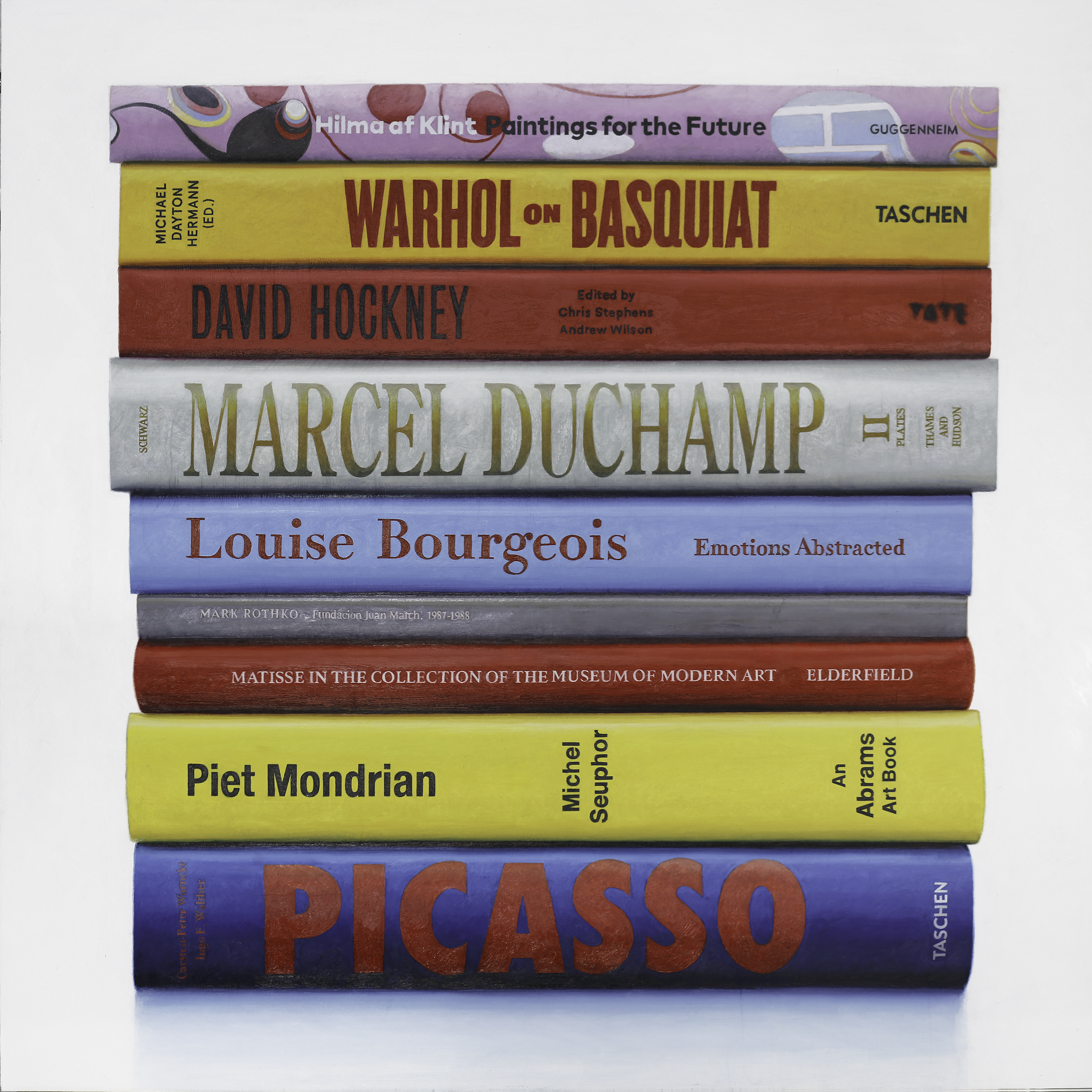 In Books, Paco Díaz transforms the spine of a book into a symbolic container of memory and silence. Stripped of text, each form becomes a visual meditation on knowledge, time, and what endures. Geometric compositions and a muted palette evoke shelves, ruins, or imagined landscapes—spaces where memory is stored, lost, or reconfigured.