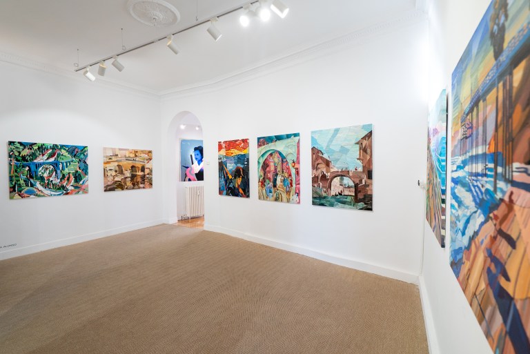 In Other Side (The Bridge), Ikella Alonso reimagines iconic images through aerial, cartographic compositions that act as bridges—between past and present, memory and invention. His paintings blend illusion and emotion, creating new ways of seeing rooted in both art history and personal vision.